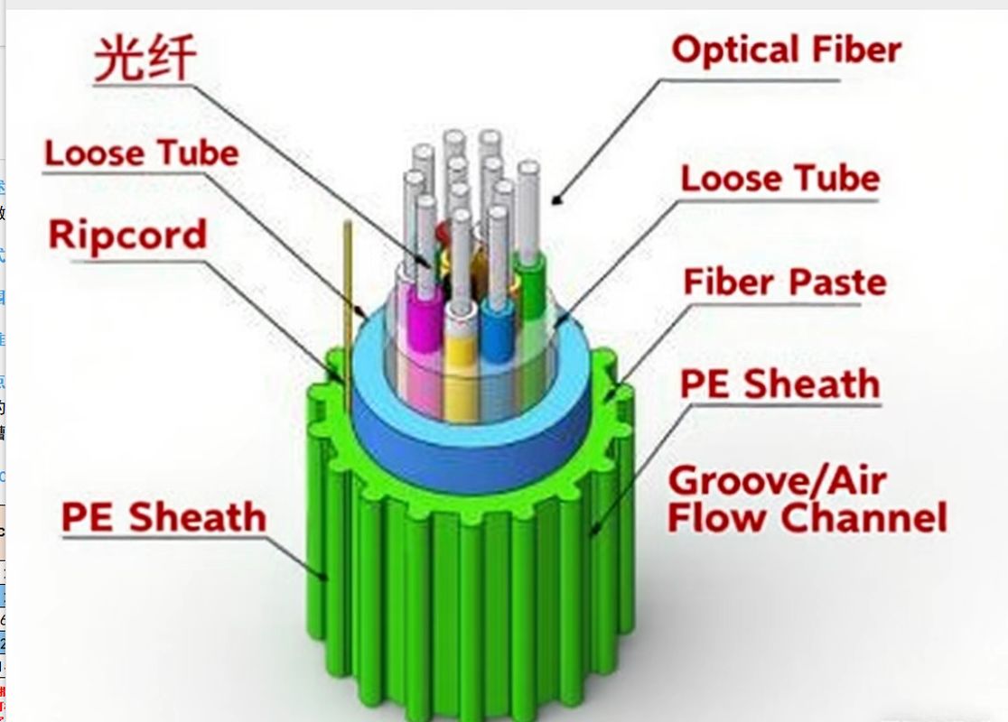 Außengeblasenes Luftblasenoptisches Kabel für die Kommunikation ohne verstärkte Komponenten, zentrales Bündelrohr, hochdünstige Polyethylenhülle.Die Struktur des optischen Kabels besteht darin, einmodische oder mehrmodische optische Fasern in ein wasserdichtes, zusammengesetztes loses Rohr mit hohem Modul aus Kunststoff zu integrieren, das lose Rohr in die mittlere Position legen, ein Tränenseil einbetten und die hochdichte Polyethylenhülle ausdrücken, um das Kabel zu formen.