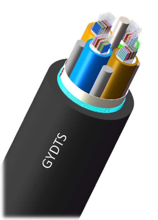 Die Struktur des optischen Kabels besteht darin, einmodisches oder mehrmodisches optisches Faserband in ein loses Rohr aus hochmodulärem Kunststoff mit wasserdichtem Verbindungsstoff zu stecken.In der Mitte des Kabelkerns ist ein MetallverstärkerFür einige optische Kabel mit bestimmten Kernzahlen wird eine Polyethylen-Pad-Schicht außerhalb des metallischen Mittelverstärkungsteils extrudiert.Locker gelegte Rohre (und Füllseile) werden um das zentrale Verstärkungsstück gedreht, um einen kompakten und runden Kabelkern zu bildenDie Lücken im Kabelkern werden mit einer wasserdichten Verbindung gefüllt, und dann wird eine Stahl-Polyethylen-Bindung ausgedrückt, um das Kabel zu bilden.